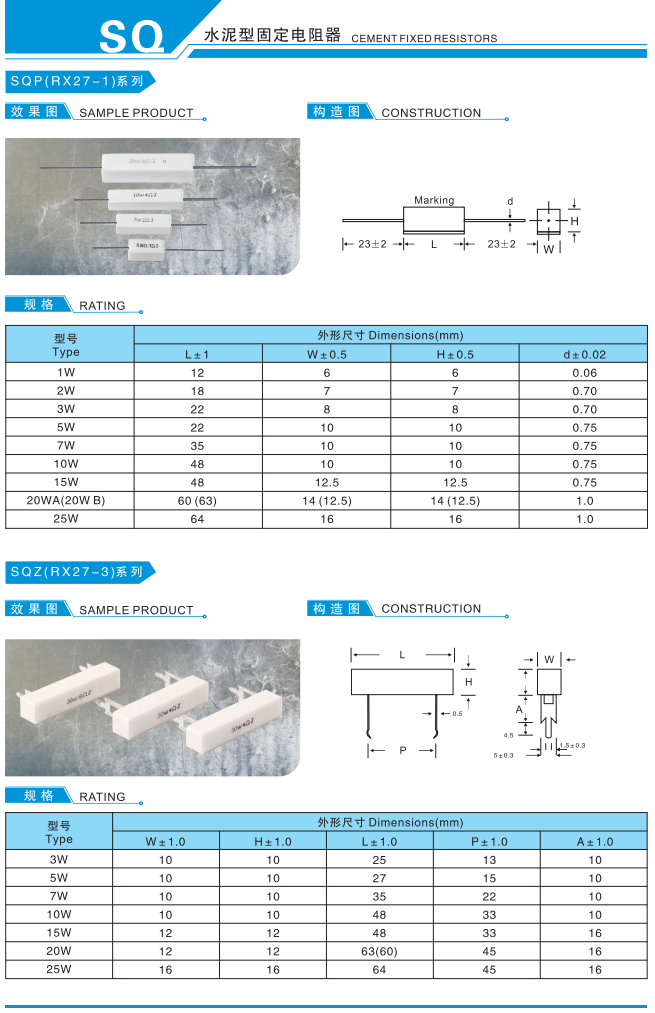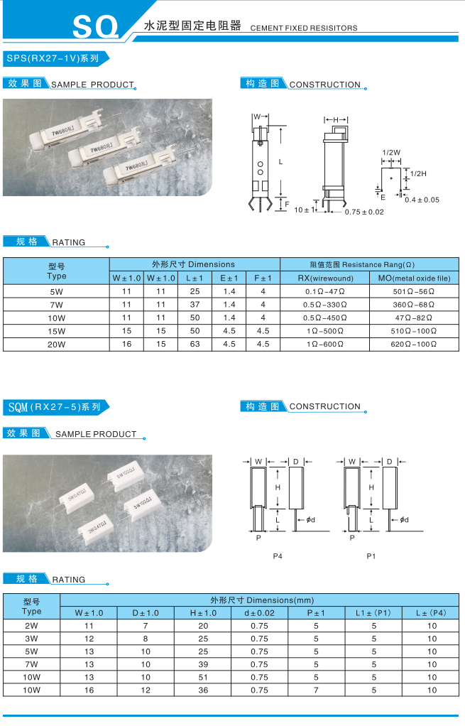 水泥型固定电阻器